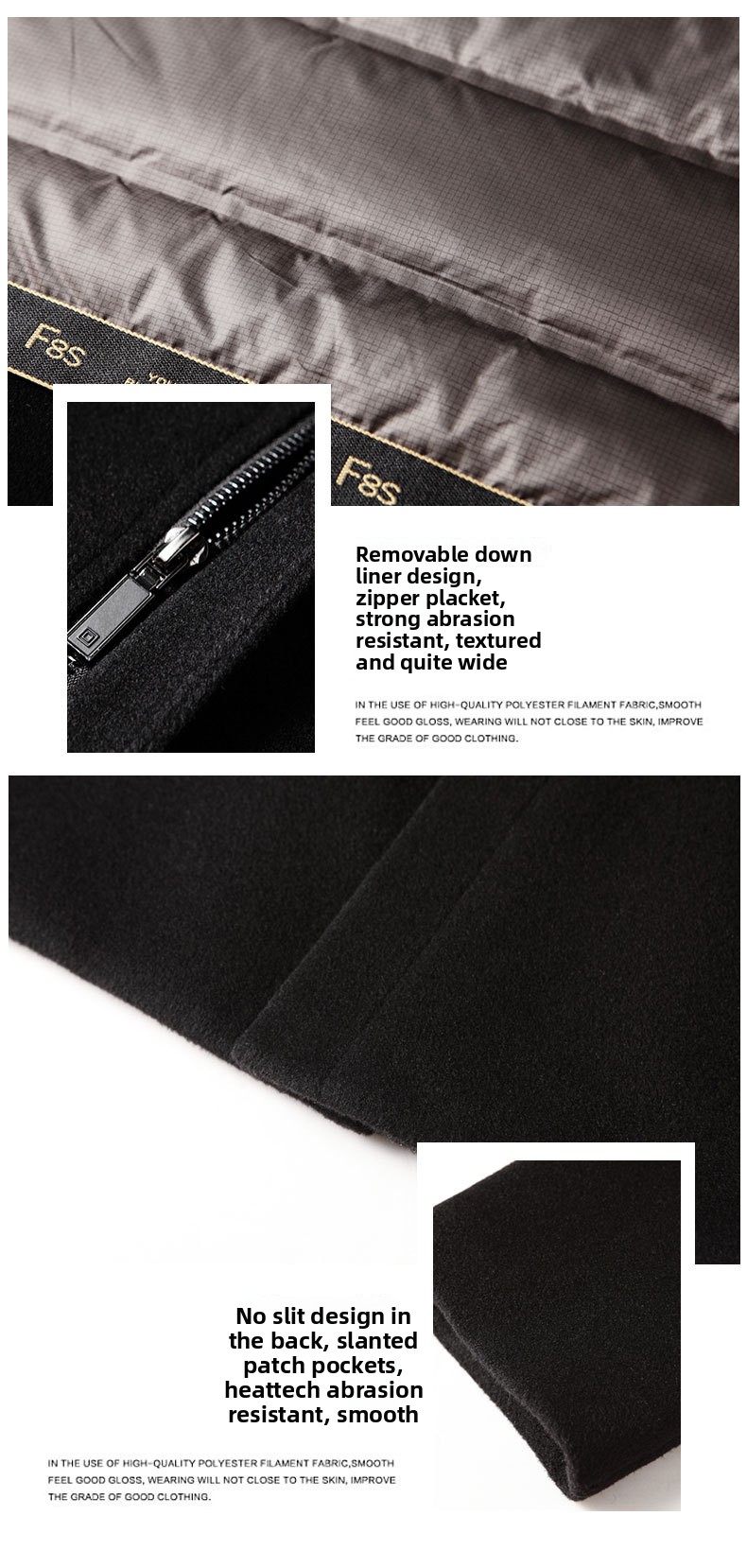 Removable Down Liner: Detachable inner down layer for versatile wear and easy cleaning.